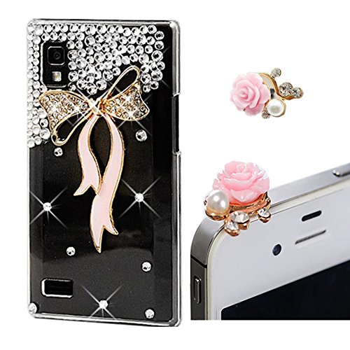 Vandot 2in1 3D Lusso Accessori Set Custodia Case Cover Shell Skin Per Caso Astuto Telefono LG P760 Optimus L9 11.9 cm (4.7 Inch) Pollice Copertura Rhinestone Bling Shinning Star Crystal Strass Caso Dell'unitÀ Elaborazione Smartphone Scintillio Twinkle Diamante Protection Protector Protettiva Cristallo Diamand Cassa Mobile Signora Fashion Glittering Lovely Nice Modern Girl Woman Style transparent trasparente Papillon Bow Tie Farfalla 3D Butterfly + 1x 3,5 mm Anti Spina Polvere Anti Dust Plug Anti-Dust Strass Tappi Polvere - Rosa Chiaro Rosa Ciondolo Per Cellulare Earphone Jack Headphones Donna Top Lady- Nero Giallo Oro