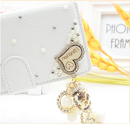 Vandot 2In1 Set 3D Lusso Accessori Flip Folio Pelle PU Book Wallet Cuoio Custodia Case Cover Shell Skin Per Caso Astuto Telefono Samsung Galaxy S4 Mini i9190 i9192 Bella Premium Quality Borsa Bag Copertura Rhinestone Bling Shinning Crystal Strass Sacchetto Caso Dell'unitÀ Di Elaborazione Smartphone Scintillio Artificial Leather Diamante Protection Protector Protettiva Magnetico Closure Chiusura Cristallo Diamand Cassa Mobile Signora Fashion Glittering Modern Girl Stile Style Design - Chiaro Fiore Card Ciondolo Per Cellulare Portafoglio Cuoio Donna Handmade Fatto a Fano Hybrid Pearl Heart I Love You Wooden+1x 3,5 mm Fiore Anti Spina Polvere Anti Dust Plug Anti-Dust Strass Tappi Polvere Earphone Jack Headphones - Bianca