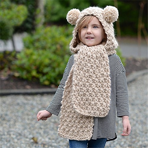 Vandot Cappello Sciarpa Fascia Scialle,Cappello del Fumetto di Stile,Bear carino Pompon Inverno caldo Coif Cappuccio Sciarpa Caps Cappello Earflap Fox scialli di lana lavorato a maglia cappelli della protezione per il bambino scherza ragazzi delle ragazze-Color crema
