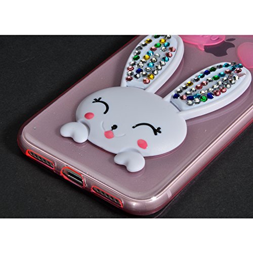 Vandot Per Iphone X/Iphone 10 Esclusivo 3D Lovely Handmade Coniglio Custodia in Silicone Glitter Bling Foldable Rabbit Bunny Ear Case Crystal Clear Trasparente Ultra Sottile Soft Morbido TPU Bumper Anti-Scraches Copertura Shockproof Back Protector con Orecchio Supporto e Cinghia nappe Hairball Shaggy -Rosa