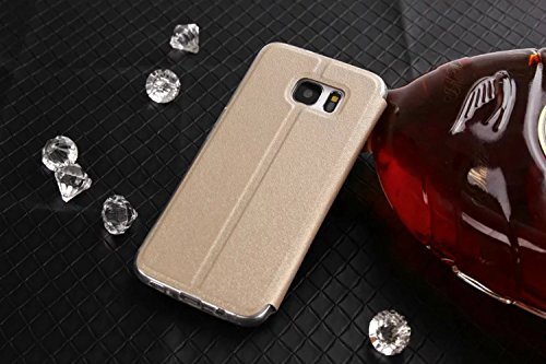 Vandot Premium Ultra-Thin Flip PU Pelle [View Window] Motiv Bumper Slim Incluso Custodia Folio Case Cover Perfetto Fit per Samsung Galaxy S7 Edge Ultra Leggero - Oro