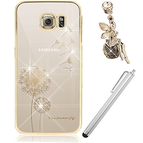 Vandot 3 in 1 Ultra Sottile Transparente Bling Hard Duro Custodia Cover Case per Samung Galaxy S6 Clear Brillare Telefono Protettiva Caso con Carino Tarassaco Stile + Protezione di Polvere Angelo Modello Brillare Anti-Dust Spina + Penne Capacitive Universali Penna Touch Screen Stylus Pens
