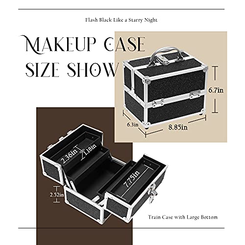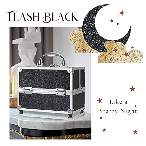 Vanity Case - Scatola per trucco con 4 vassoi, organizer per cosmetici per bambini, con chiusura a chiave, Glitter nero