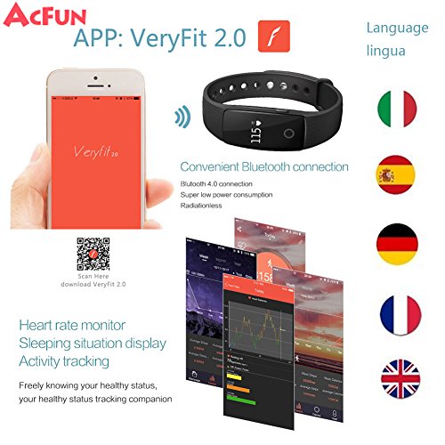 Compatibile con Android 4.3 e superiori o iOS 7.0 e superiori, smartphone abilitati Bluetooth 4.0, non può funzionare con tutti i dispositivi Windows. Come accoppiare con il telefono: in primo luogo, si prega di scaricare l'APP, Veryfit per la frequenza cardiaca. Si prega di accendere il Bluetooth dello smartphone. Dopo di che, si prega di aprire l'APP e ricercare e associare i
