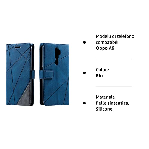 Vankii Cover per Oppo A9 2020/A5 2020/A11X/A11, Flip Caso Libro Premium Portafoglio Custodia in Pelle PU Magnetica,Custodia Pelle Sintetica TPU Silicone Antiurto,Funzione Supporto Slot Schede (Blu)