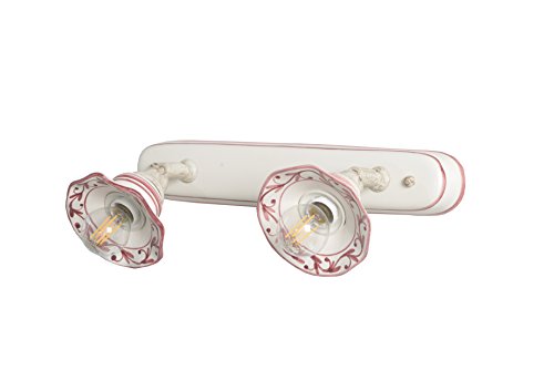 VANNI LAMPADARI - Applique da Parete Interno Edera - Lampada da Parete Orientabile 2 Luci- in Ceramica Decorata a Mano - Applique Camera da Letto - Bagno - Cucina - Soggiorno, Rosa