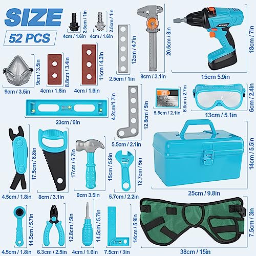 Vanplay Giochi Bambini 3 Anni Cassetta Attrezzi Bambini Attrezzi Giocattolo con Trapano Elettrico Attrezzi Lavoro Regalo di Natale per Bambini Ragazzo Ragazza 3 4 5 6 7 Anni (52 Pezzi)