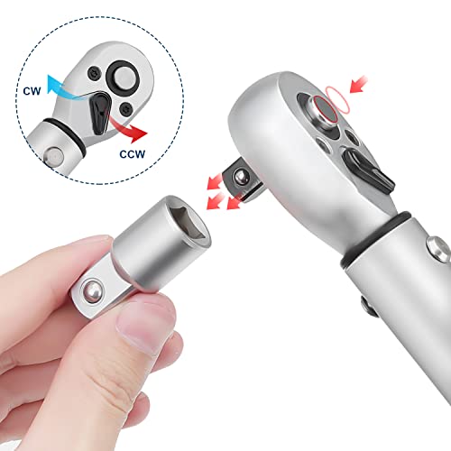【Valore di coppia preimpostato e un dispositivo acustico】Quando viene raggiunto il valore di coppia impostato, chiave dinamometrica auto emette un "clic", e allo stesso tempo, è accompagnato da un'evidente vibrazione della mano, per ricordarti di interrompere l'applicazione della forza per evitare danni da sovracoppia ai tuoi oggetti. La testa della chiave dinamometrica è dotata di pulsante di rilascio rapido, che può facilmente installare e rimuovere il manicotto.