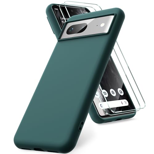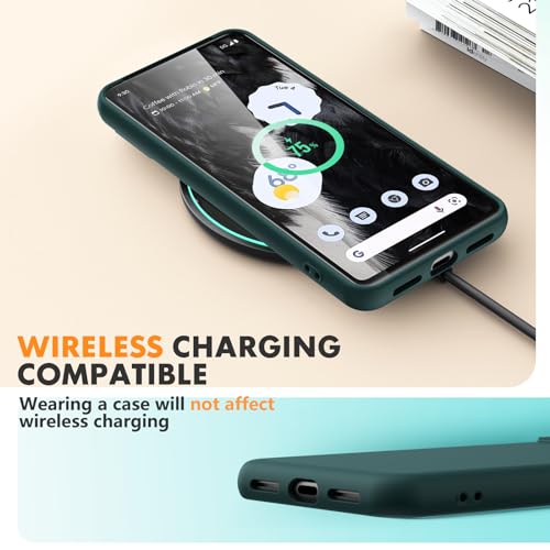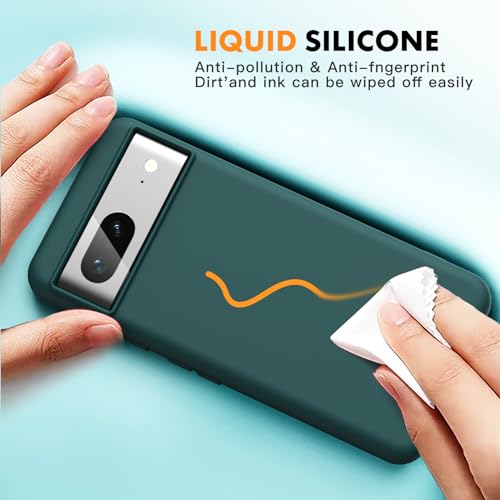 Vansdon Cover Compatibile con Google Pixel 8, 2 Pellicola Protettiva in Vetro Temperato, Gomma Gel di Silicone Liquida Antiurto Custodia - Verde Notte