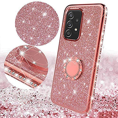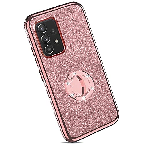 Vansdon Cover Compatibile con Samsung Galaxy A52 4G&5G/A52s 5G+[2X Pellicola Protettiva in Vetro Temperato], Copertura Protettiva con Diamante Glitterato con Anello a 360 Gradi - Oro Rosa