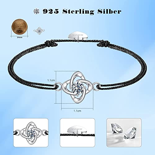 VANSZA Bracciale da Donna, Bracciale di Argento 925 Scintillante Zirconi e corda regolabile, Trifoglio Fortunato con Zirconi Lucidi, Regalo di San Valentino,Braccialetto Fiori