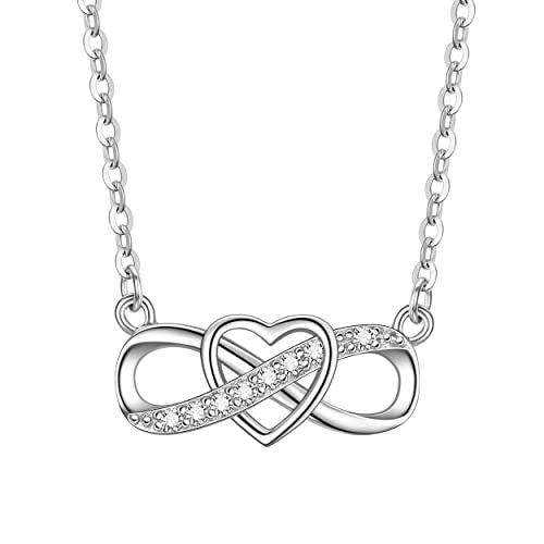 VANSZA collana in argento 925 collana infinito cuore signore catena con ciondolo per ragazze donne con confezione regalo (argento)