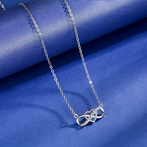 COLLANA INFINITY: Collana da donna con ciondolo a forma di cuore e simbolo dell'infinito, pietre bianche di zirconia cubica incastonate in argento 925 che accentuano la delicata bellezza, un regalo perfetto da abbinare a tutti gli abiti.