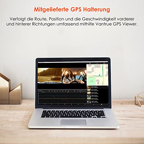 VANTRUE N2S 4K GPS Doppia 1440P Telecamera per Auto, Dash Cam Visione Notturna IR Posteriore, 24h. Monitoraggio del Parcheggio, 3840 x 2160P Anteriore, 2 Pollici 320° Condensatore G Sensor Max. 512 GB