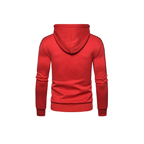 VANVENE Felpa da uomo in pile con cappuccio, tinta unita con cerniera, Rosso, M