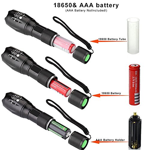 Alimentazione: una batteria 18650 (incluse) o tre batterie AAA (non incluse).