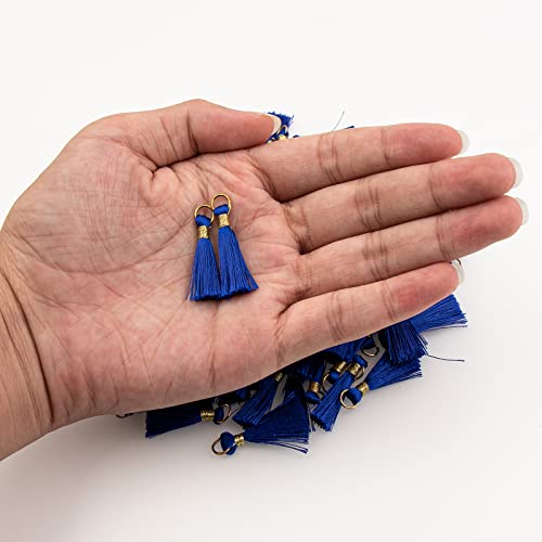 VAPKER 100 mini nappe blu nappa piccola fatta a mano 3 cm mestiere nappe con anello di salto in oro per orecchini, gioielli, collane, accessori fai da te