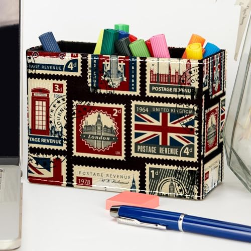 VAPOKF Portapenne da scrivania, con 2 scomparti, motivo: Union Jack Big Ben London, portapenne, portapenne, pennelli da trucco, articoli di cancelleria, organizer per casa e ufficio