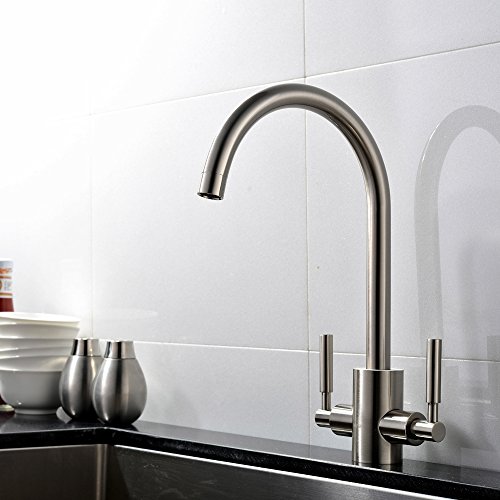 VAPSINT Lavandino a 2 manopole, Metallo, Argento, 350mm Brushed Steel Kitchen Taps