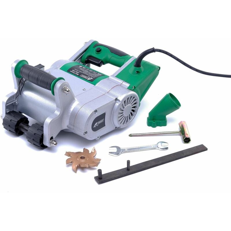 Scanalatore a fresa, fresa per calcestruzzo Lo scanalatore JHS-1100 consente un lavoro di precisione grazie alle sue eccellenti qualità di manipolazione L'elevata resistenza delle ruote di plastica assorbiranno le vibrazioni e le maniglie ergonomiche ti permetteranno di che utilizzarlo senza sforzo. L'ugello per collegare un'aspirapolvere permetterà un'aspirazione ottimale della polvere. Perché uno scanalatore a fresa? Perché il suo utilizzoti lascia una scanalatura pulita e pronta per essere utilizzata. Utilizzando uno scanalatore a disco, è necessario completare la scanalatura a mano (martello e scalpello), e ti fa perdere tempo. Con lo scanalatore a fresa, questo non è il caso! Contenuto Lo scanalatore per calcestruzzo 2 carboni di ricambio 1 fresa Dati tecnici Alimentazione: 230-240 V Potenza: 1100 W Frequenza: 50 Hz Giri/min.: 1600 Profondità di taglio: 25-30 mm Larghezza di taglio massima: 25 mm Peso della macchina: 6,7 kg Peso totale del pacco: 10 kg Possibilità di collegare il
