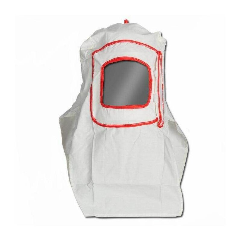Maschera con cappuccio di sabbiatura Campo di applicazione Cappuccio di protezione per la sabbiatura a getto libero Per una semplice protezione degli occhi e della testa Utilizzare Visiera integrata, non scambiabile Questi cappucci devono essere semplicemente spinti sopra la testa... Dimensioni della cappa: 49cm di larghezza per 54cm di altezza