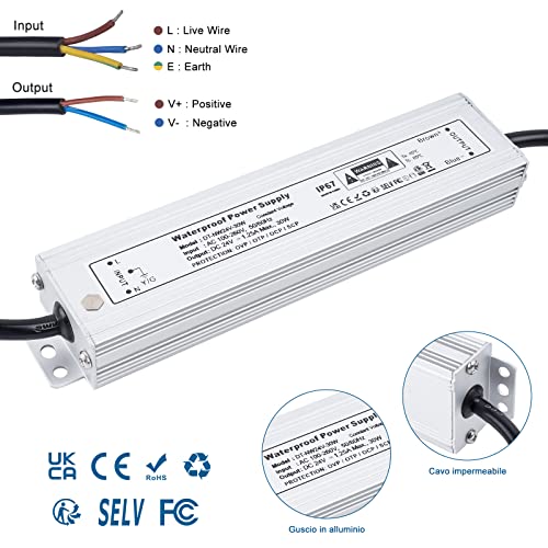 * AFFIDABILE - Ingresso: AC 100-260 V, 50/60 Hz. Uscita: 24 Volt DC, 30 Watt max. Copre la corrente AC domestica a DC per una soluzione di illuminazione fluida senza sfarfallio con protezione integrata per un eccesso termico, sovratemperatura e corto circuito.