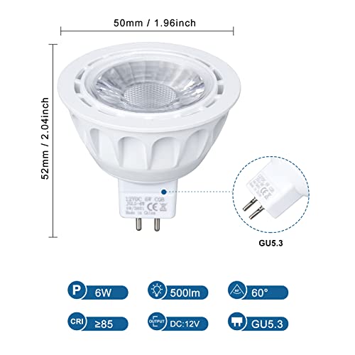* CARATTERISTICHE - Luce spot a LED a bassa tensione GU5.3 da 12V con 500 lumen e angolo di emissione di 60°. I chip LED colorati di alta qualità proiettano splendidi e ricchi colori per creare un'atmosfera piacevole. CRI (Indice di resa cromatica) ≥ 85, fornisce colori più naturali e vividi.