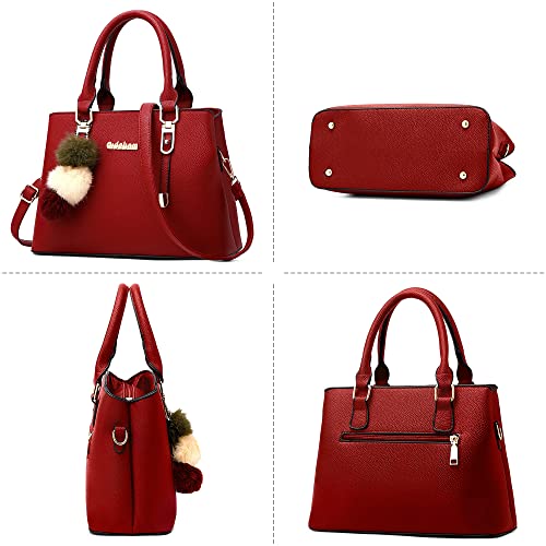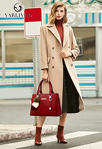 VARLIVOO Donna Borsa a Mano Borse a Tracolla Borsa Messenger Pom Pom Ornamento Borsa A Mano Tote Bag Borsa Da Corso College Viaggiare Lavoro PU Pelle, Rosso, L
