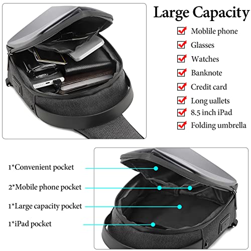 VARLIVOO Moda Zaino Monospalla da Uomo Borse a Spalla USB Port Sling Bag Antifurto Password Blocco Sportivi Guscio Rigido Crossbody Bag Sling Backpack Impermeabile Poliestere Nero B