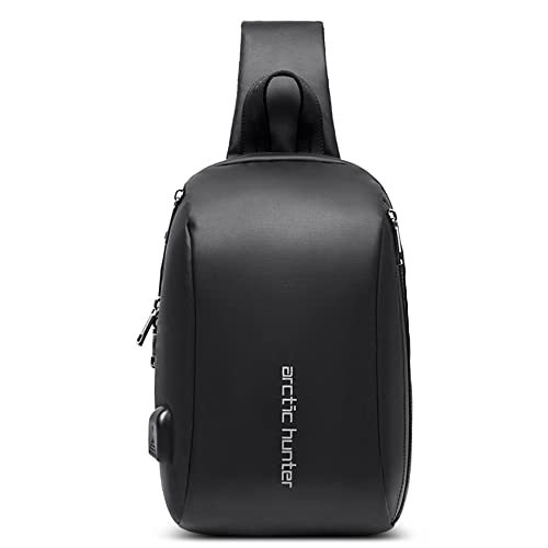 VARLIVOO Moda Zaino Monospalla da Uomo Borse a Spalla Sling Bag con USB Port Crossbody Bag Riflettente Sling Backpack Viaggio Escursionismo Impermeabile Poliestere Nero