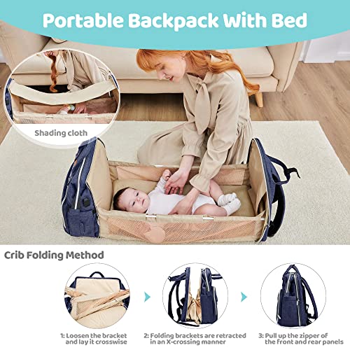 VARLIVOO Zaino Fasciatoio Zaino per Pannolini da Viaggio con Fasciatoio USB Port Borse per Bebè con Porta Ciuccio Portatile Cinghie per Passeggino 2 Isolanti Tasche Poliestere Blu