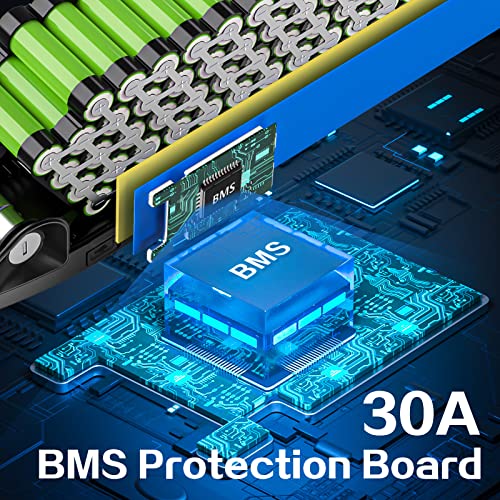 【Blocco di sicurezza e indicatore della batteria】 Dotato di scheda di protezione BMS da 30 A per proteggere la batteria. Assicurati che il blocco di sicurezza sia bloccato prima di premere il pulsante di accensione. Il blocco di sicurezza previene il furto della batteria. L'indicatore della batteria mostrerà la capacità residua approssimativa. La batteria non è dotata del protocollo di comunicazione, quindi il display della batteria sarà impreciso