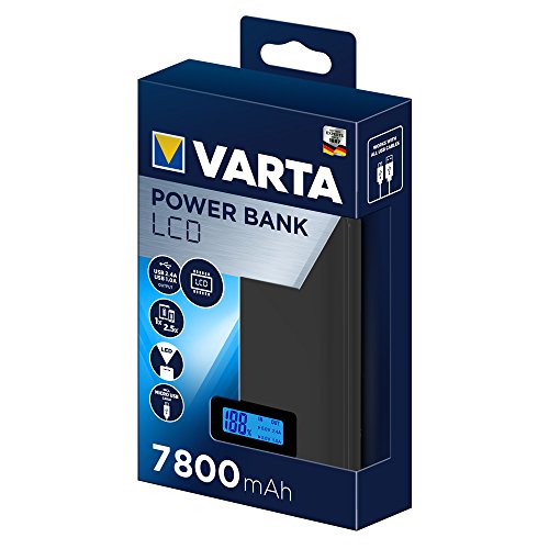 VARTA 57970101111 Power Bank 7.800mAh, 2 Porte USB, Display LCD Indicante Carica/Scarica, Compatibile per Dispositivi USB Ricaricabili Anche di Diverse Marche, Incl. Cavo Micro-USB 50 cm, Colore Nero