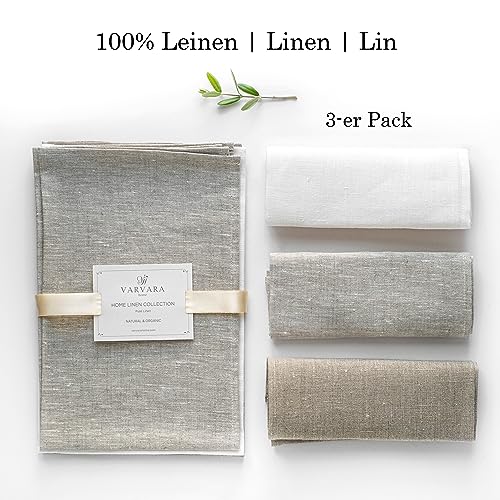 Varvara Home 3 Strofinacci in lino - Asciugamani in lino - Strofinacci da cucina lino - Canovacci cucina lino - Asciugapiatti lino bianchi naturale