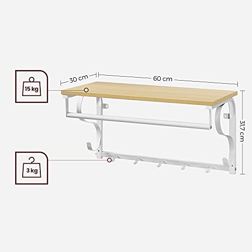 VASAGLE Appendiabiti a Parete con Ripiano Portaoggetti, Attaccapanni con Ganci, Mensola a Parete con Barra Appendiabiti, 5 Ganci, per Ingresso, Corridoio, Camera da Letto, Bagno, Soggiorno LCR11WY