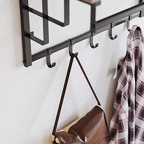 VASAGLE Attaccapanni da Parete Vintage con 5 Ganci, Mensola da Muro con Barra Appendiabiti, per Ingresso, Camera da Letto, Marrone Nocciola e Nero LCR012B03