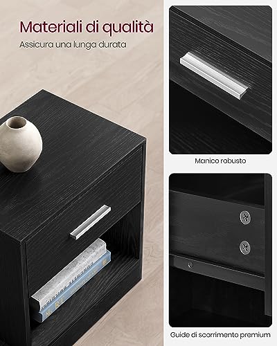 VASAGLE Comodini, Set di 2 Tavolini con Cassetto, Maniglia, Scomparto Aperto, per Camera da Letto, Soggiorno, Nero Classico LET819T56