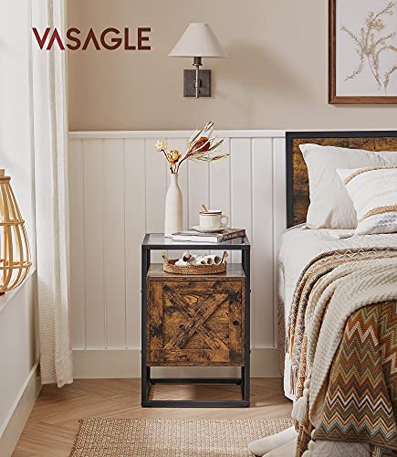 VASAGLE Comodino, Tavolino in Vetro con Scomparto, Vetro Temperato, Struttura in Acciaio, Tavolino per Camera da Letto, Soggiorno, Salotto, Design Industriale, Marrone Vintage e Nero LET550B01