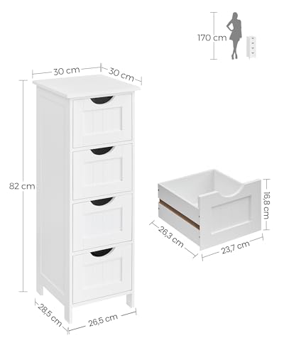 VASAGLE Mobile da Bagno, Cassettiera, Armadio Autoportante, con 4 Cassetti, 30 x 30 x 82 cm, per Bagno, Soggiorno, Sala da Pranzo, Cucina, Stile Moderno, Bianco LHC40W
