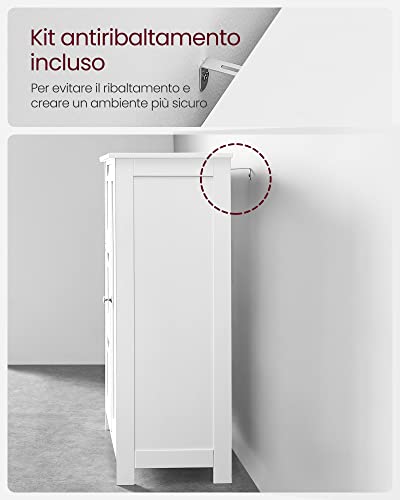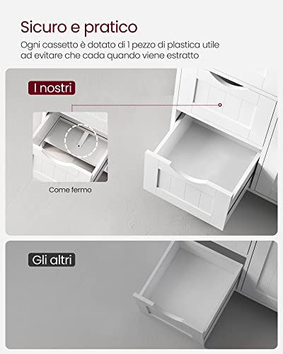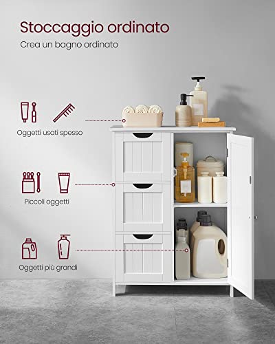 VASAGLE Mobile da Bagno, Mobiletto per Bagno con 3 Cassetti Capienti, Armadietto da Bagno, Ripiano Regolabile, 30 x 60 x 81 cm, Bianco BBC49WT