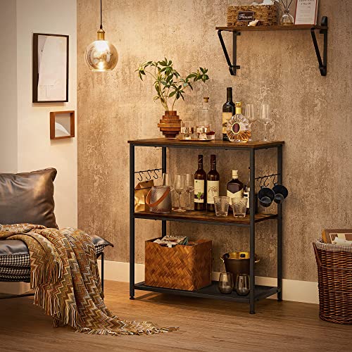 VASAGLE Portastampanti, 80 x 40 x 90 cm, scaffale portaoggetti isola, supporto per forno a microonde, con 3 ripiani aperti, 6 ganci, stile industriale, marrone rustico e nero KKI002B01