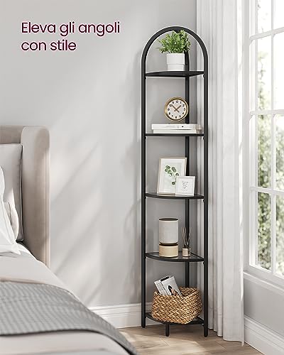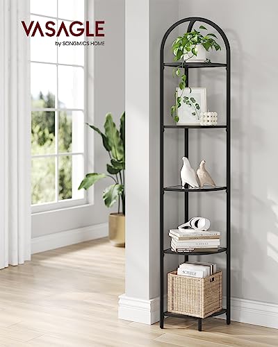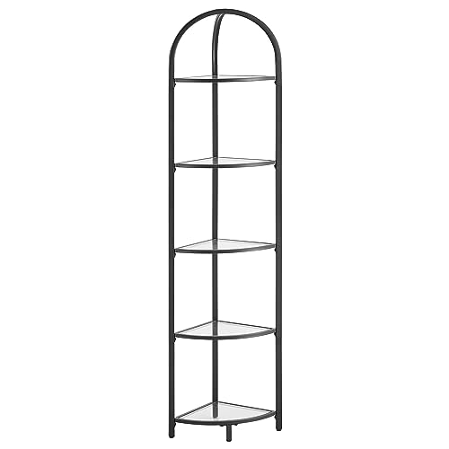 VASAGLE Scaffale Angolare a 5 Livelli, Libreria, Porta Piante, Scaffale da Bagno, Vetro Temperato, Struttura in Acciaio, Stile Moderno, per Soggiorno, Cucina, Nero Classico LGT810B61