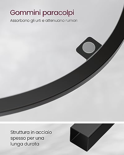 [Robusto e stabile] Realizzato in acciaio e vetro temperato, questo scaffale angolare vanta durabilità e resistenza. Ogni ripiano regge fino a 5 kg, fornendo un supporto affidabile. Il kit antiribaltamento e i piedini regolabili ne aumentano la stabilità