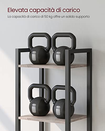 VASAGLE Scaffale a 6 Ripiani, Libreria per Ufficio, Studio, Soggiorno, Camera da Letto, 30 x 40 x 187,5 cm, Stile Industriale, Greige e Nero LLS101B02