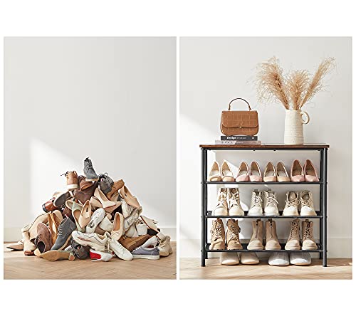 VASAGLE Scarpiera a 4 Livelli, Scaffale, Scarpiera Salvaspazio, Struttura in Metallo, 3 Ripiani in Poliestere, Porta Scarpe per Ingresso, Stile Industriale, Marrone Vintage e Nero LBS035B01
