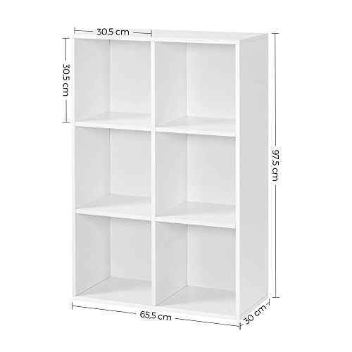 VASAGLE SONGMICS Libreria Scaffale Mobiletto Armadietto Mobile in Legno Pannelli di Particelle a 3 Ripiani 6 Scompartimenti Bianco LBC203D, ingegnerizzato, Würfelregal