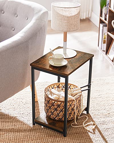 VASAGLE Tavolini, Set di 2 Comodini, con Ripiano Portaoggetti, Struttura in Acciaio, per Soggiorno, Sala d'Attesa, Camera da Letto, Industriale, Marrone Vintage e Nero LET272B01