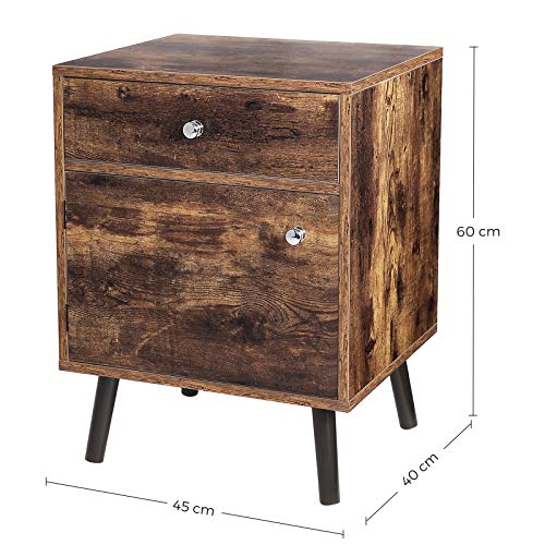 VASAGLE Tavolino, Comodino con 1 Cassetto e 1 Scomparto Portaoggetti Aperto, Gambe in Legno di Pino, Durevole, per Camera da Letto, Soggiorno, Ufficio e Studio, Marrone Vintage LET073B01
