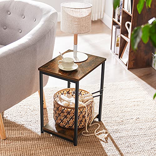 VASAGLE Tavolino, Comodino, con Ripiano Portaoggetti, Struttura in Acciaio, per Soggiorno, Sala d'Attesa, Camera da Letto, Industriale, Marrone Vintage e Nero LET271B01