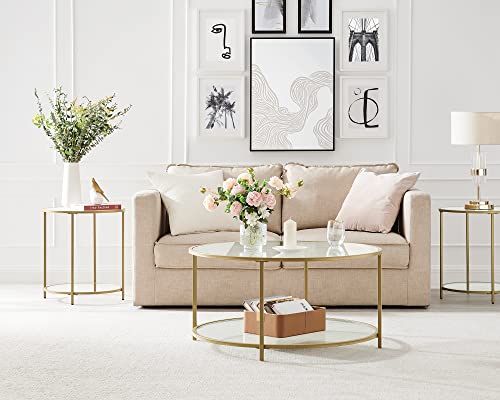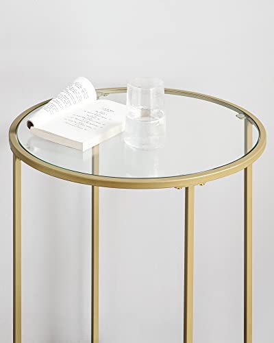 VASAGLE Tavolino Rotondo, Tavolino da Salotto in Vetro Temperato con Struttura in Acciaio, Tavolino da Divano con Ripiano Inferiore, Stile Moderno, per Soggiorno Camera da Letto, Dorato LGT034A61